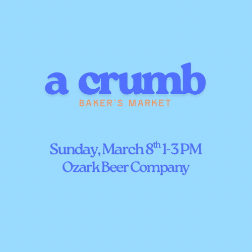 A Crumb - Bakers Market Sunday, March 8, 2026 1:00 PM 3:00 PM Ozark Beer Company 109 North Arkansas Street Rogers, AR, 72756 United States (map) Google Calendar ICS More info!